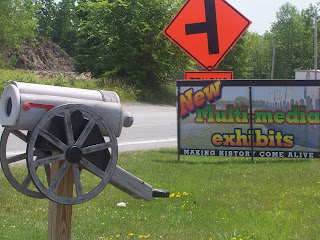 From there we moved on to the Battlefield Park visitors' center. We found very friendly and outgoing staff, as well as a bookstore stocked with all the books we had just read for our unit. They also sell a nice supply of local goods like maple syrup, honey and recipe books. We watched a movie there about the Turning Point and then we played with their hands in exhibit of soldier clothes and a tent like the soldiers would have camped in. After that, we toured the battlefield. That costs extra, but I was determined to do this right. We had brought a picnic, so we found a nice spot to sit and eat. We were met by another friendly and outgoing interpreter, a retired to teacher who happily told us all about the site. He also gave us directions to a spot on the lake in Ticonderoga where we could find a heron rookery, but I regret we didn't get there this year. He also told us that there might be birds' nests in the cannons, which might have become the most memorable fact of the day for the Boy.